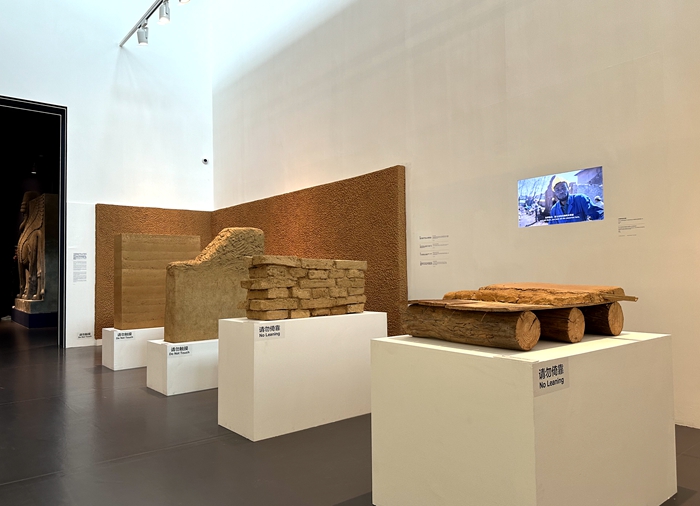 展覽從過去30多年間世界文化遺產遭受破壞的現狀出發,回溯“聯盟”這一新型多邊組織的創建和發展,以及標志性的文保項目。之后從可移動文物、非物質文化遺產、建筑類遺產等三個方面展示不同文化遺產保護和修復的特殊技術和專業知識,以及當地社會群體參與的重要性。在這里,觀眾可以看到馬里破損的古籍手稿、粉碎的黎巴嫩古代玻璃器,以及碎成幾百塊的伊拉克拉瑪蘇雕塑如何在傳統技藝和現代科技的共同加持下得以復原;可以看到阿富汗非物質文化遺產手工技藝如何得到完整記錄與傳承;也可以通過尼日爾古代土制民居和貝魯特近現代別墅的修復,直觀了解建筑遺產修復工作面臨的挑戰。