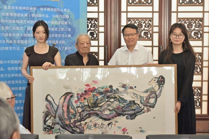 劉漢先生在發言中首先表達了對學校和學院的感謝,并將兩幅作品捐贈給中央民族大學以及美術學院。同時劉漢先生向在座的同學們傳達了他對年輕一代的殷切期望,他期望同學們能夠肩負起推動中國畫傳承與發展的重任,不斷繼承和創新,讓這一傳統藝術形式在新的時代背景下煥發出新的活力。(圖文提供:中央民族大學美術學院)