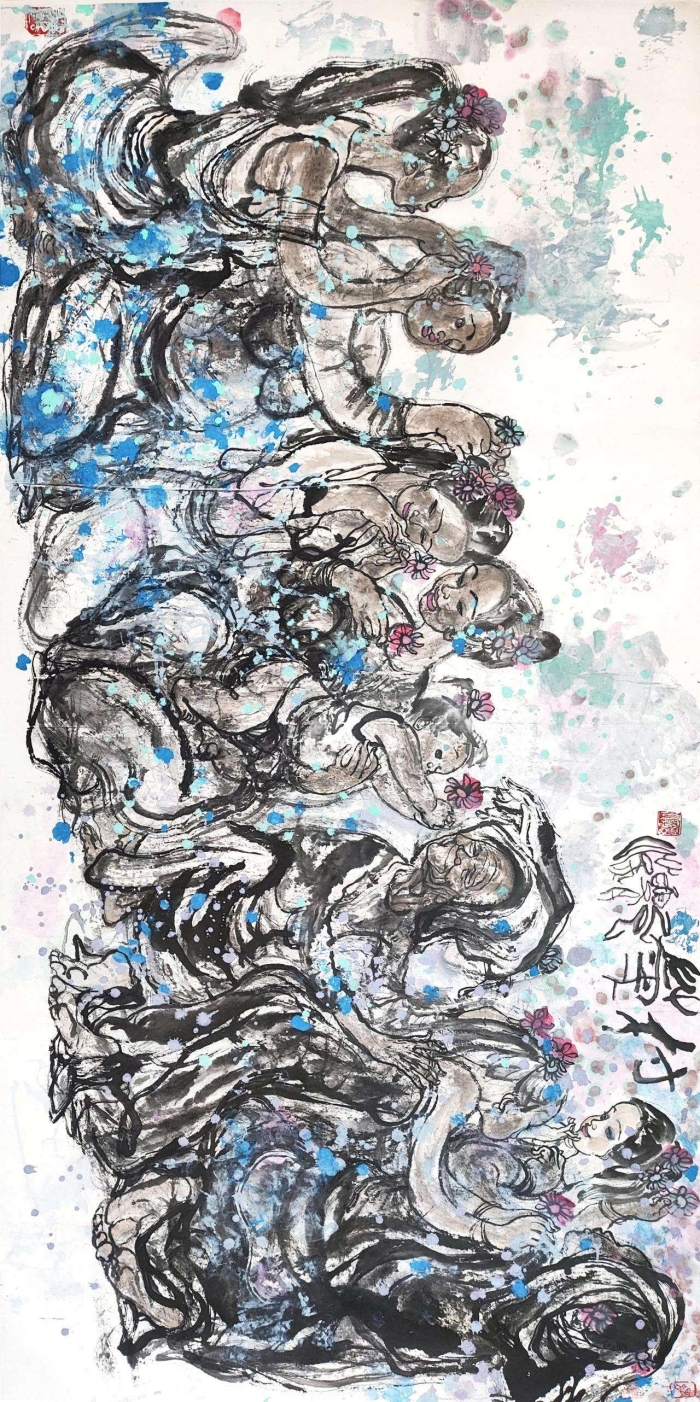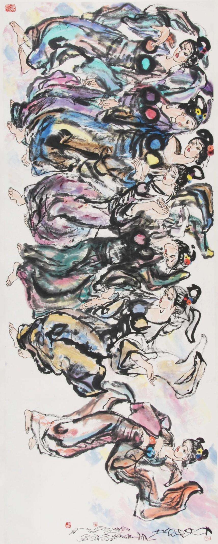 《天女思凡》紙本彩墨 144×340cm 2002年