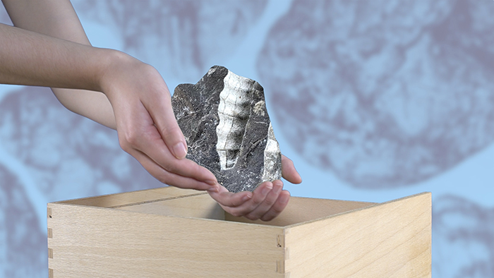 《石化海的形成》在藝術家曾經使用過的三間工作室內拍攝,并將視角延伸到室外令人驚嘆的風景之中。錄像在微距和遠距之間切換,以強調這一事實:雕塑作為一種人造物,是在有機的生態環境中被賦予生命活力的。