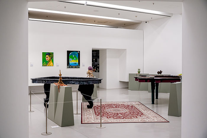 《愛情殿堂》以超現實視覺敘事的手法,探索一種矛盾美學觀,意在刻畫兩性交往時微妙、細膩、不確定的心理變化,傳達出藝術家對原初世界受造的想象。在藝術家用象征語言建構的萬物關系中,呈現出“對立”與“統一”且周而復始的狀態。
