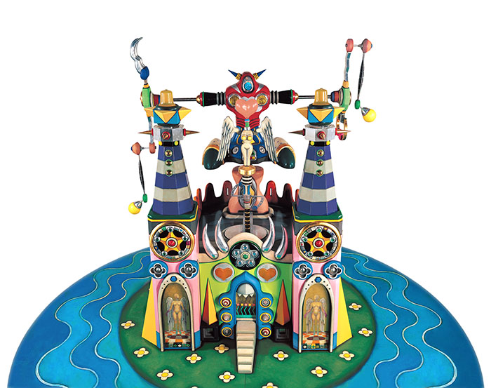 李子勛 《愛情殿堂》 1999年 360 cm×360 cm×185 cm 丙烯顏料、噴漆、木材、塑膠、金屬、燈、馬達、機械裝置、金魚