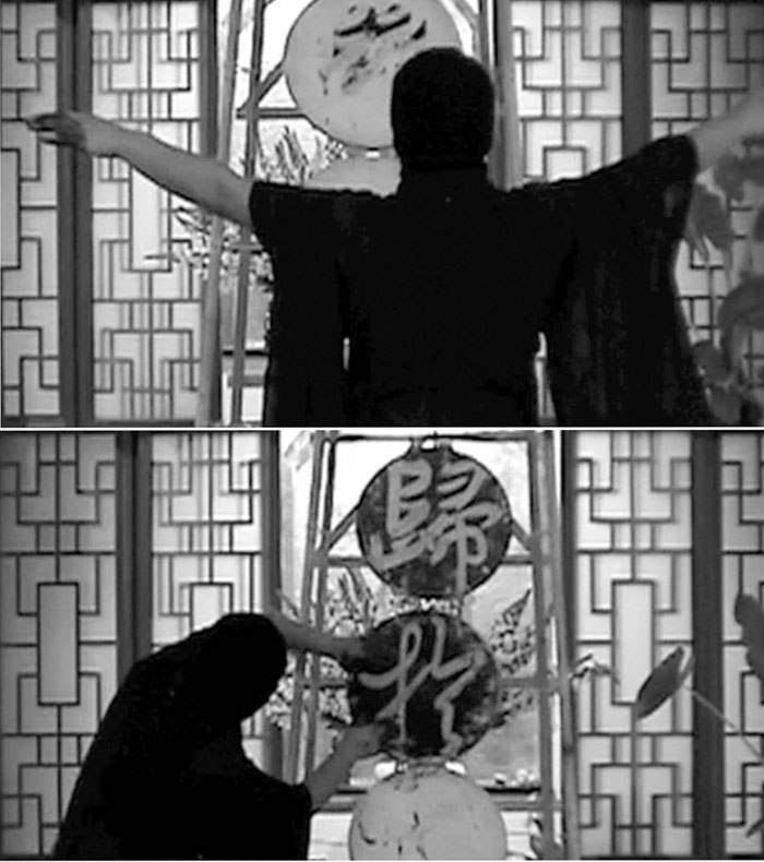 在魯大東和張聯的作品中,鏡子直接出場,將遞歸的“原點”之間的相似性象征地隱喻出來。對魯大東來說,鏡子是書法循環的一種載體。以此觀念為契機,他創作了一場未命名的現場書寫表演。他書寫的文字中融合了古代紋樣,內容上也呼應了美術館的文化基因。