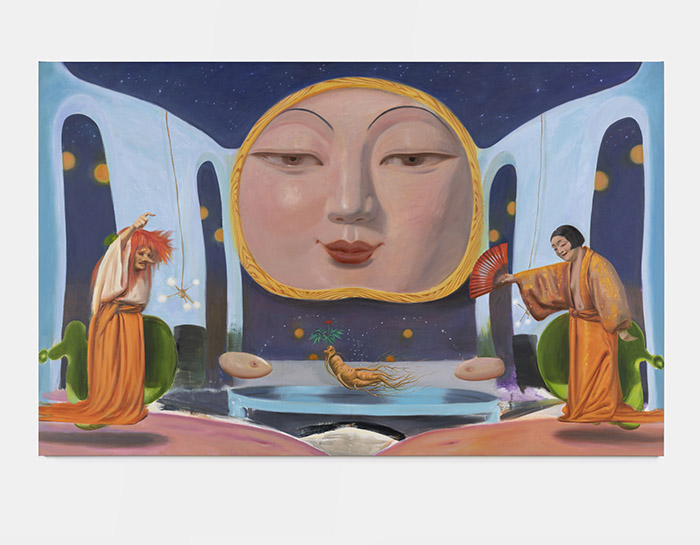 張聯的《神廟》圍繞著藝術家將自己視為集體和自然界的一部分,同時又與之分離的觀念展開。藝術家描繪了一個理想化的劇場,所有關于人類和宇宙的敘事都在此展開。神圣和世俗、沖突與和諧、悲傷與歡樂,一切對立的橋段都在這個劇場中輪流上演。