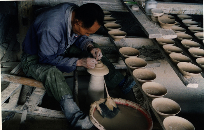 當時國營工廠改制,工人下崗,但是我發現在景德鎮城鄉交界處的一些村莊里出現了一些手工藝作坊在生產仿古瓷,其生產形式與合作方式幾乎是傳統的翻版,當時我就在思考一個問題,這種傳統的復興是歷史的倒退還是社會的進步?如果這是進步,它是朝什么方向進步?我甚至覺得文化的發展未必要走直線,其實可以走螺旋形上升的,也就是看上去是一種傳統的回歸,但實際卻是一場文化的提升,甚至可以是文明的升級。