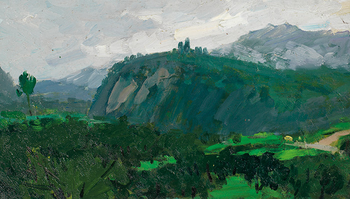鐘涵 《綠色調山景寫生》 18×31.9cm 紙本油畫