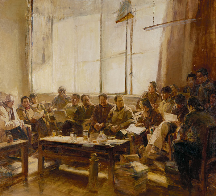 新中國成立后,油畫因其色彩濃郁、視覺沖擊力強等特征成為展現時代特色的重要表現方式,革命歷史題材也成為油畫家藝術探索的開端與重要創作方向?!爱斘覀兿胍娗叭四侵饾u遠去的依稀身影時,當會記住他們艱難的足跡踏過之路的意義?!辩姾媲械伢w會到了革命歷史的壯烈堅毅與新時代的美好生活,這也激發了藝術家描繪革命先輩的激情,抒發胸中的愛國熱情。