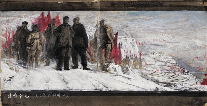 鐘涵 《北國風光(毛主席初到陜北)》28x54cm 紙本水粉