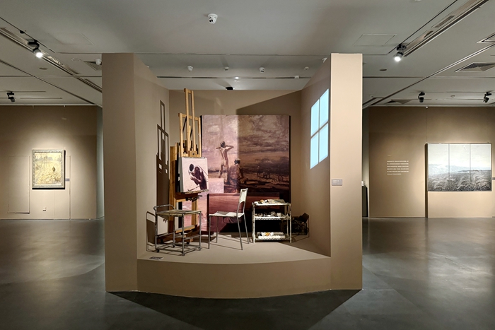 展覽現場展示鐘涵生前的作畫工具與畫室一角