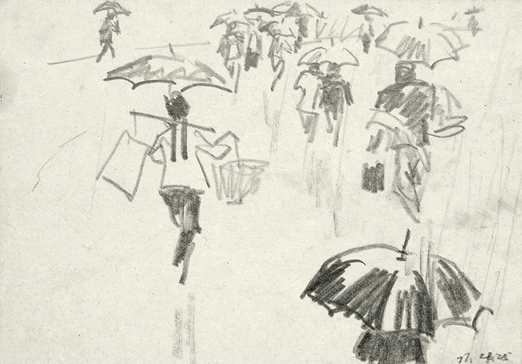 雨中街市 宋秉恒 27cm×39.2cm 紙本·油畫棒 年代不詳 浙江美術館藏