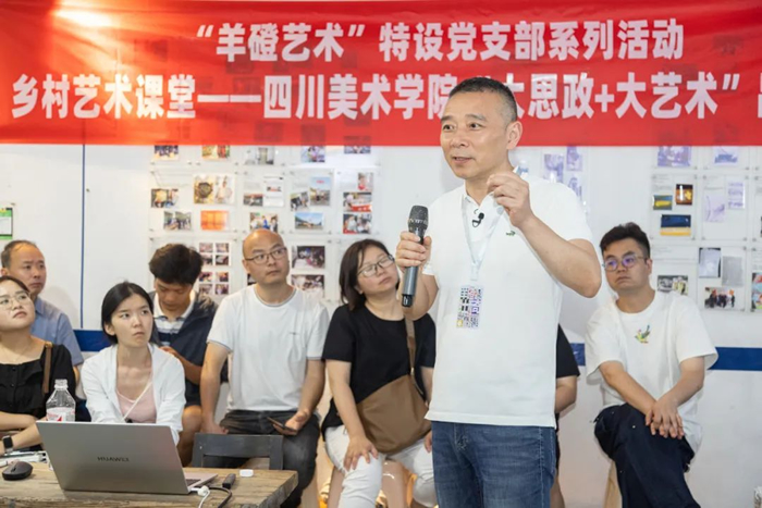 此次藝術鄉場還開展了鄉村藝術課堂(羊磴講堂)——四川美術學院“大思政——大藝術”品牌項目的第一講,由焦興濤院長親自授課。此課堂旨在加強思政教育重要陣地,通過藝術課堂,融入思政教育內容,以更生動、更具體的方式傳達社會主義核心價值觀,培養學生、市民的愛國情懷和社會責任感,后續將以每月一次的頻率在羊磴鎮現場開講。