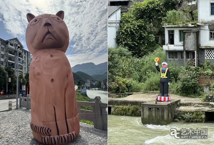高永鵬根據素人藝術家郭開紅的作品《羊磴貓》、羊磴藝術合作社的項目作品《警察上崗》設計的戶外氣模(攝影:劉鵬飛)