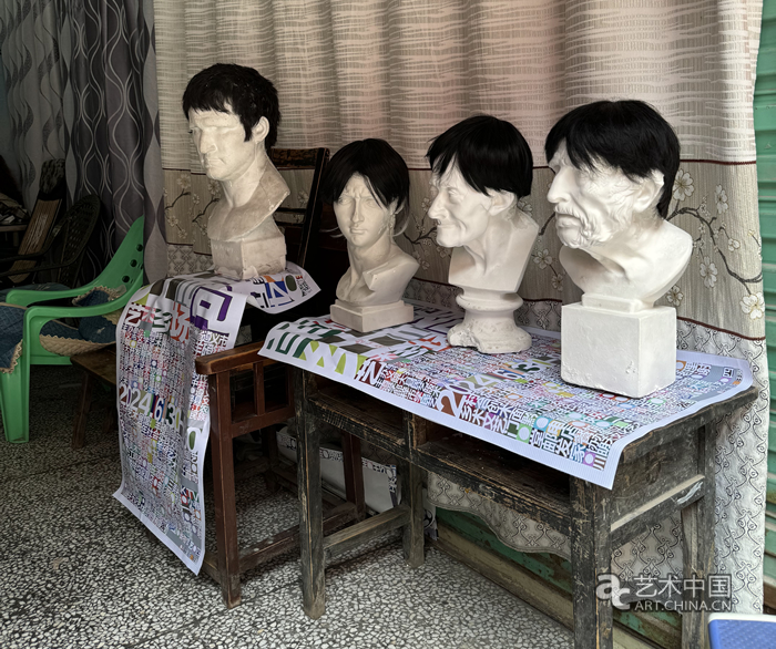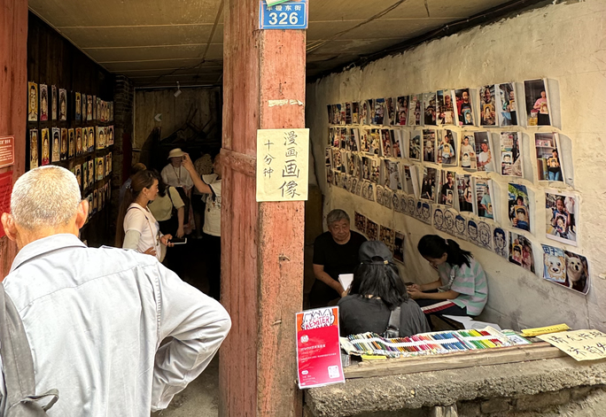 在一樓臨街房間,藝術家雷杉杉正在為羊磴的居民快速的畫像,墻上已經貼滿了當地居民的畫像,這是今年藝術鄉場的新作品《羊磴新漫社》,陳盅含、雷杉杉、秦源浩幾位藝術家以卡通肖像式畫像的方式,與當地居民形成了熟悉彼此的連接方式,也為當地人尋找到一種新的視覺紀念形式。