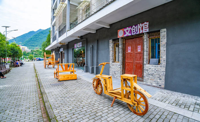在老街上還能看到老電影院展出的“美麗鄉村與非遺保護”綦江農民版畫展、姬式酒坊墻上的“童子童謠”,廣場展陳的“萬盛經開區非遺展示進桐梓”等內容。這些是綦江農民版畫院,萬盛民間文藝家協會,桐梓縣文學協會等羊磴周邊地區文化機構推出的活動。付臣亮表示,羊磴藝術協會也計劃與其他文化組織合作,通過開發一些研學活動,為羊磴的藝術可持續性探索新的路徑。
