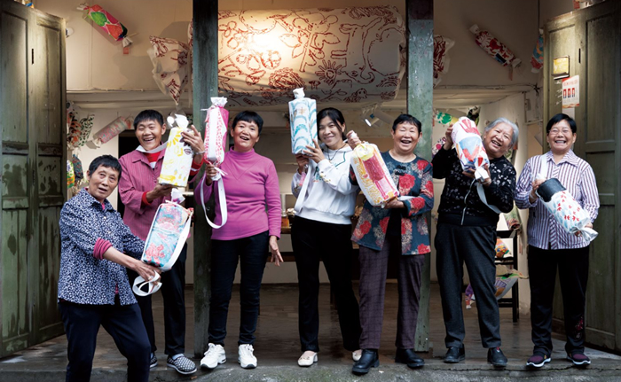 奶奶們展示著糖果禮包(圖片來源:羊磴藝術協會)