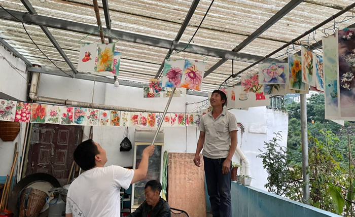 李維花正在畫畫(圖片來源:羊磴藝術協會)