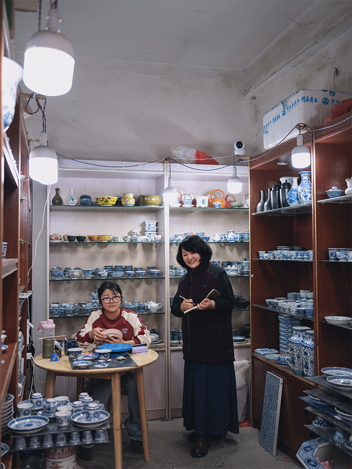 方李莉教授在樊家井仿古陶瓷店鋪做田野調查(攝影:王彬 圖片來源:毛青)