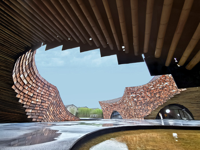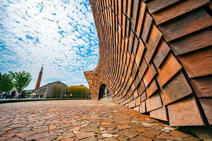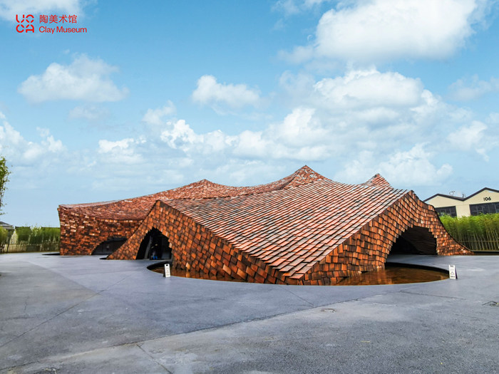 UCCA陶美術館的設計由以“五感建筑”理念享譽國際的日本建筑大師隈研吾擔綱設計。此次在建筑設計上首次大規模使用陶土作為主要材料,將傳統陶土融入現代建筑理念之中,以“陶土元素”為核心意境,奠定UCCA陶美術館的形態基礎,使得建筑本身即是一次藝術的展現,同時也是對丁蜀地區悠久陶文化的現代詮釋和致敬。建筑外立面選用特制陶板,經高溫燒制,令其表面產生微妙的凹凸紋理與色彩層次,在陽光和不同角度下呈現出變幻莫測的“窯變色彩”效果,賦予美術館獨特的視覺辨識度和藝術生命力。