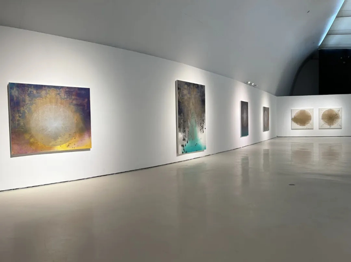 在央美美術館展覽的作品探索了一系列生動的視覺色調視覺范圍,反映了張真源擁抱永恒之光的旅程和對超驗感知的信仰。張真源的創作過程以靜謐和精細的涂抹層次感為特征,多達40甚至50層顏料細細地覆蓋在畫布上,冥想式的創作方法促進了意識和再生本質的深刻聯系。他將創作過程中的意外結果描述為神性的啟示,表現為永恒之光。在生命過程中,他遇到了神示并執行了直覺的傳遞。藝術家在教徒式的創作過程中產生了一種冥想狀態,這種神性直接進入了他的繪畫。