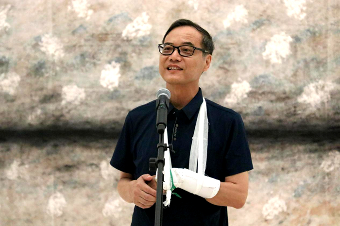 藝術家張真源在展覽現場接受采訪 攝影:許柏成