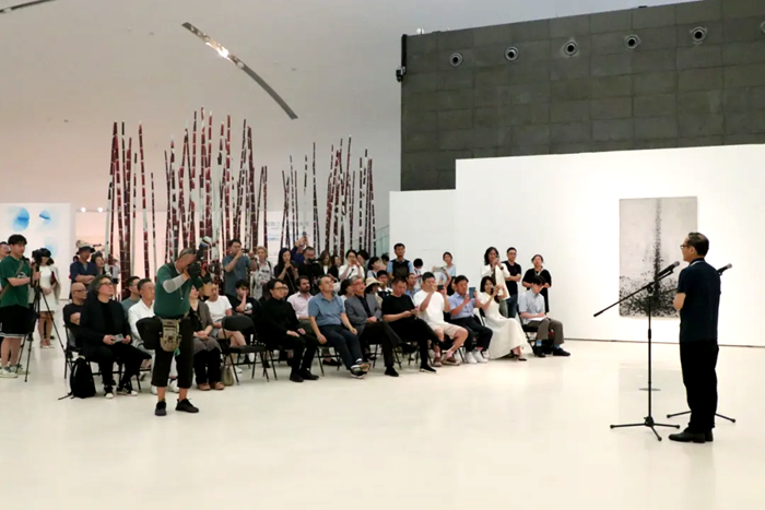 中央美術學院美術館館長靳軍在開幕式致辭中代表央美美術館向來自韓國的四位杰出藝術家表示熱烈的歡迎。他談到,此次展覽由中央美術學院美術館與Waterfall藝術基金會共同策劃,旨在促進中韓文化交流,展現韓國當代藝術的態度。展覽匯聚了四位藝術家的作品,以獨特的視角和藝術語言展現了韓國傳統文化的精髓和當代藝術的活力。藝術家們通過對傳統媒介的實踐,將其轉化為具有當代性的虔誠表達,展現了傳統文化的獨特魅力。他希望通過此次展覽繼續增進中韓兩國人民之間的了解和友誼,促進兩國文化的交流和合作。
