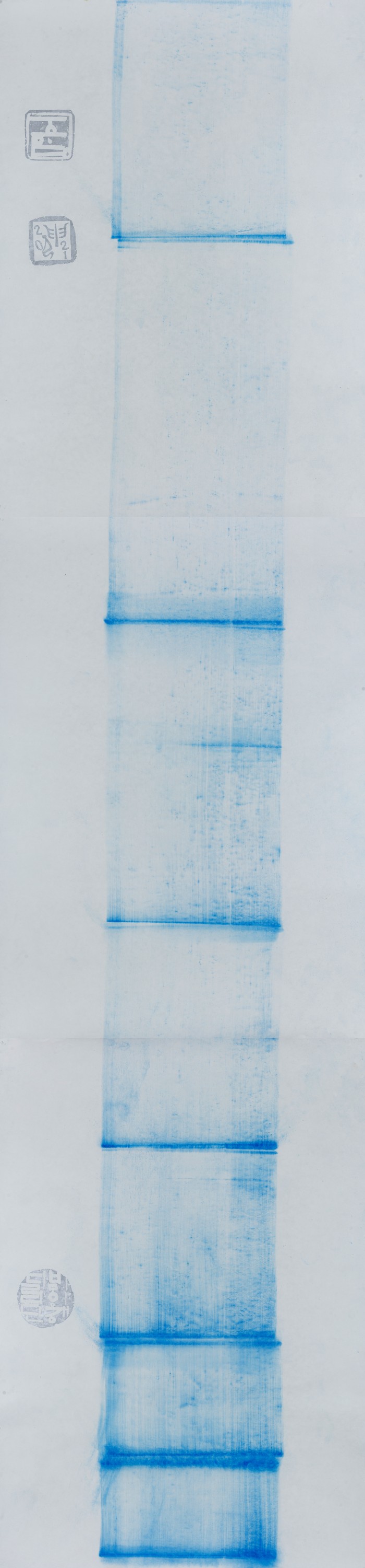 在這次展覽中,李鎮雨展出了超過 16件主要作品,如《長河》及其隨后的繪畫《瀑布》《雨》《河流》等,他的作品將長江視為中國大陸的生命線,表達了對復興和活力的祈禱。這些作品的靈感來自于他2008年在中國七個月的旅行。李鎮雨將水描述為更新、凈化和再生的象征,《瀑布》《雨》《河》和《藍》系列作品都以中國的復興和繁榮為中心。