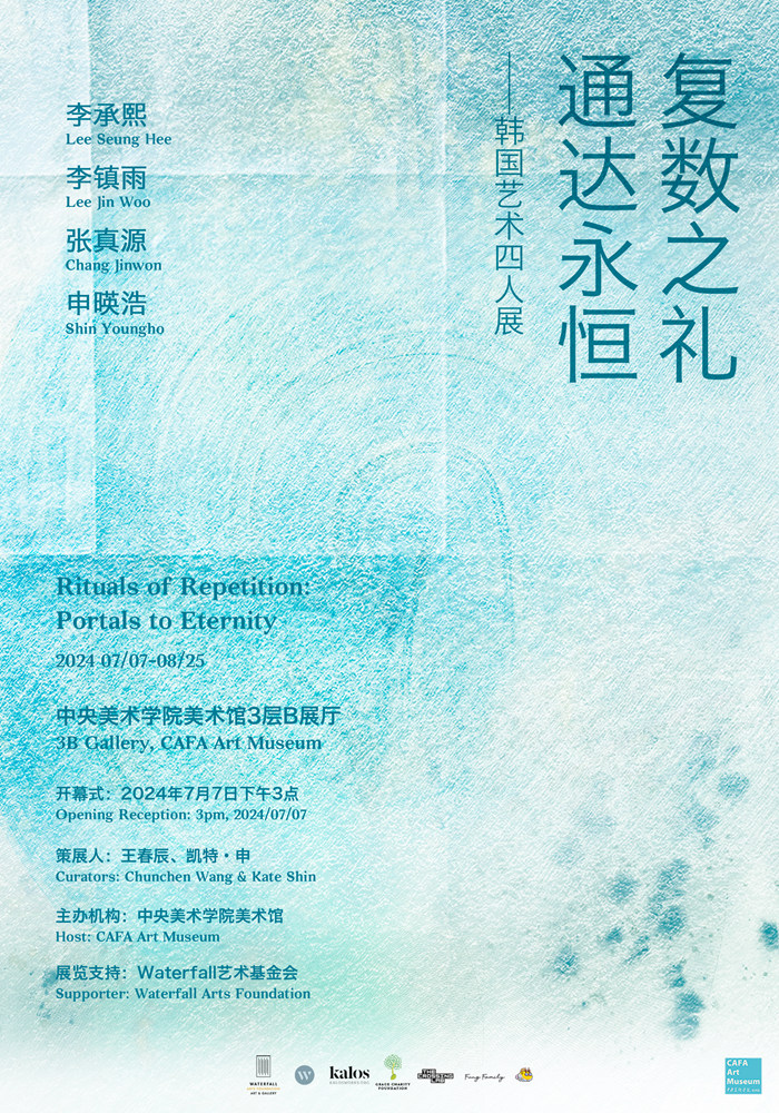 2024年7月7日下午,一場個體藝術風格、語言彼此鮮明,而在創作方向與路徑上具有一致性的視覺展覽在中央美術學院美術館三層B展廳上演。這次展覽名為“復數之禮 通達永恒”(Rituals of Repetition,Portals to Eternity),由中央美術學院美術館主辦,Waterfall藝術基金會支持,王春辰、凱特·申(Kate Shin)擔任策展人,展出了李鎮雨(Lee Jin Woo)、張真源(Chang Jinwon)、李承熙(Lee Seung Hee)和申暎浩(Shin Youngho)四位韓國藝術家的藝術創作。