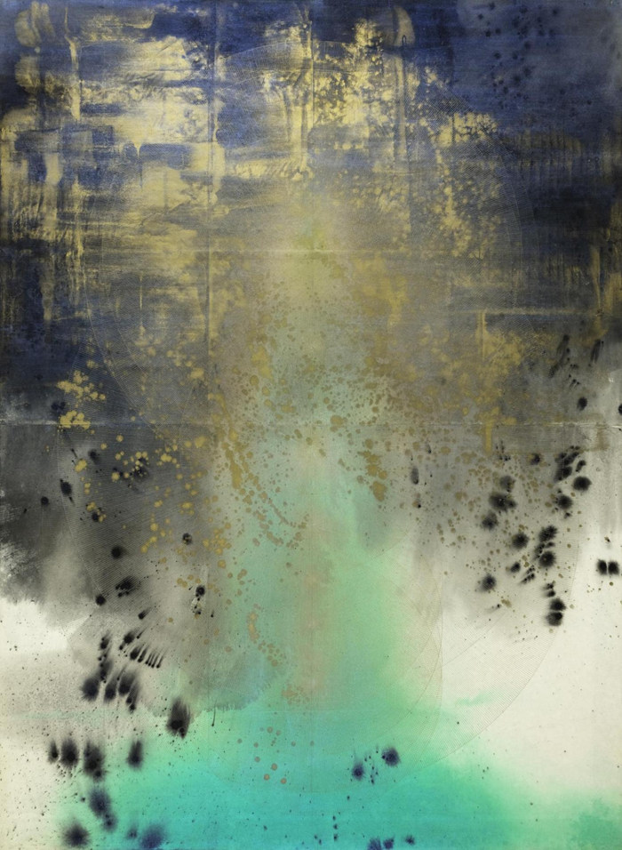 張真源,《之間_11》,203 x 185.4cm,韓國墨水、金屬顏料、丙烯、金屬筆、鉛筆、韓紙, 2019-2020