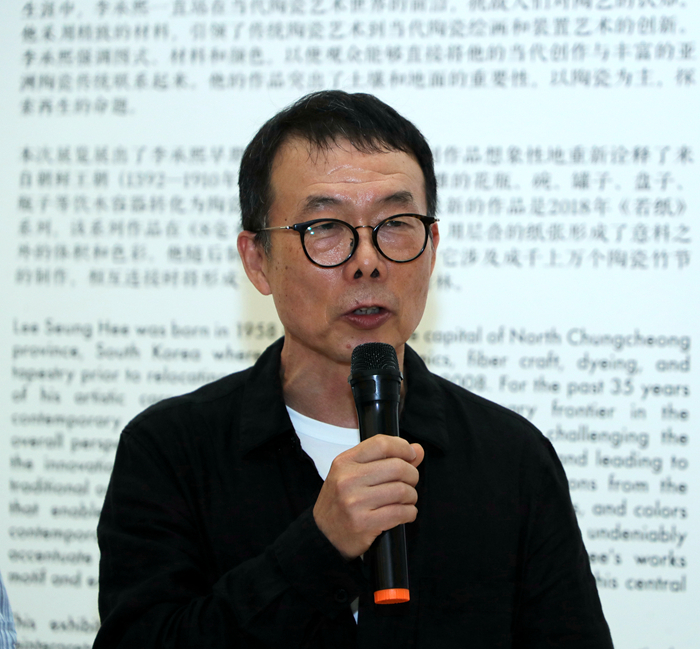李承熙1960年出生于韓國清州市,他在2008年搬遷到中國景德鎮之前學習陶瓷、纖維工藝、染色和掛毯制作。在過去35年的藝術生涯中李承熙一直處于當代陶藝的前沿,不斷挑戰傳統觀念,將陶瓷藝術創新成為當代繪畫和裝置藝術作品。李承熙的作品強調土壤和地面的重要性,強調主題、材料和色彩,探索再生的主題。