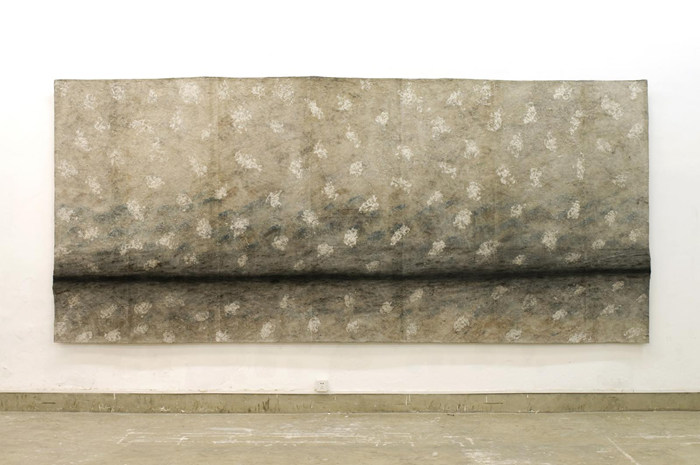 李鎮雨,《無題(Untitled)》,210x376cm,韓紙混合物、亞麻布,2009