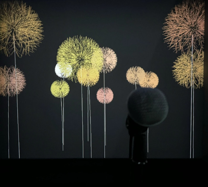 埃德蒙·庫肖,米歇爾·布雷特,蒲公英,2006年,互動裝置,定制軟件、視頻投影、麥克風,展覽現場,西岸美術館,攝影:張渤婉