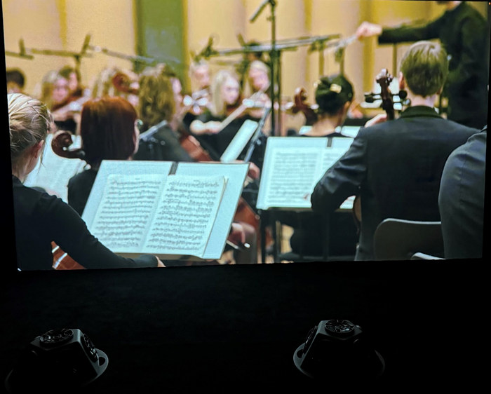楊嘉輝,2018年,消音狀況#22:消音的柴可夫斯基的第五交響曲,影像裝置,數字錄像、12聲道裝置和12個粉末涂層揚聲器,展覽現場,西岸美術館,攝影:張渤婉