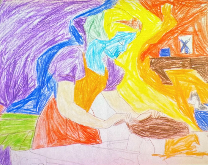 藝術家奧利弗·比爾的《重生1(白雪公主)》選取了沃爾特·迪斯尼第一部動畫片《白雪公主》(1937年)中白雪公主制作餡餅的片段,她哼唱著“有一天我的王子會到來”,對未來充滿期待,而在這時,喬裝成老婦人的惡毒皇后出現在窗前。比爾將這一段內容中的每一個畫面都截取出來,并除掉畫面的顏色,將畫面印刷品交給一所小學的小朋友們,請他們自由涂色。而后,比爾又以十幾種語言對原曲進行了改編,并最終將重新生成的畫面和聲音結合,制作成我們在作品中看到的影像片段。由孩子們對逐幀的片段進行涂色,這是對畫面的解構;再用多種語言改編原聲音樂,這是對聲音的解構。當解構的畫面疊加解構的聲音,便呈現出一段如魔術般的畫面,讓人覺得歡快愉悅,卻也免不了察覺到對邪惡的隱憂,頗具沖突的戲劇效果油然而生。