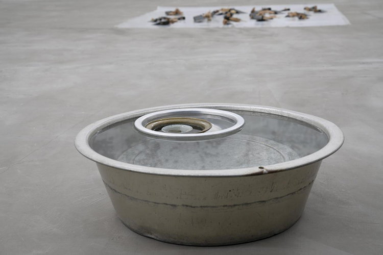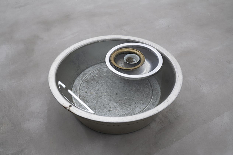 李鋼《何為無限》 2024年 水、鋁盆、銅盆、陶碗、牛角杯、 尺寸可變