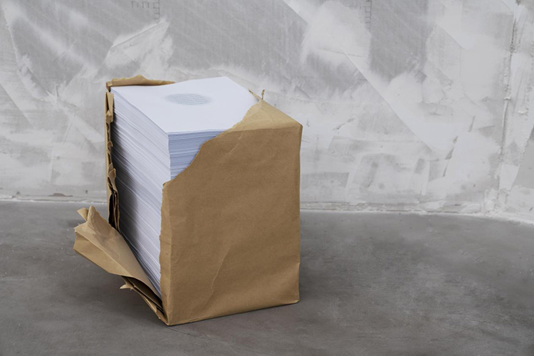 李鋼,《新道德》,2024,A4紙、豬油、牛皮紙,尺寸可變