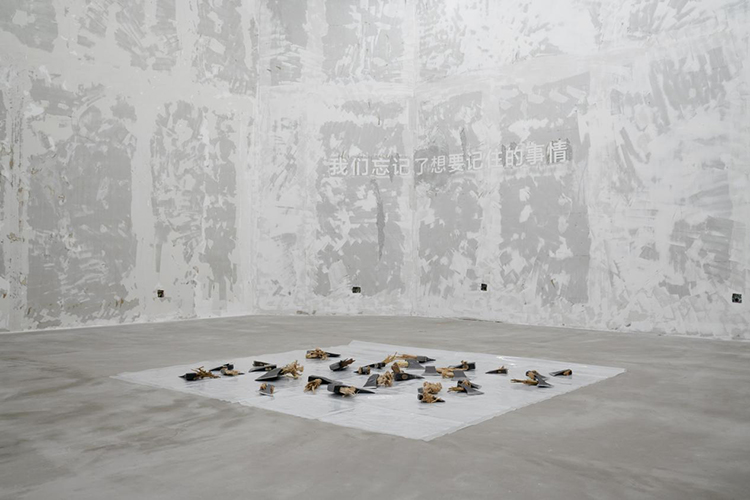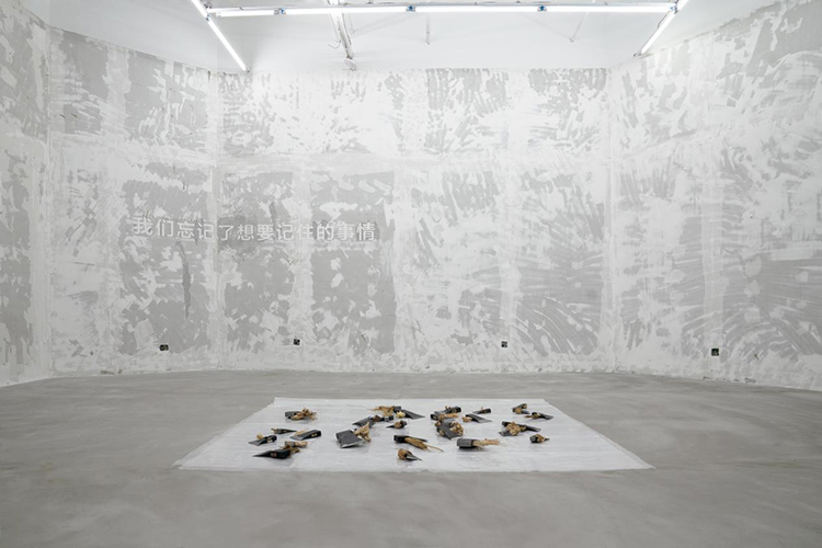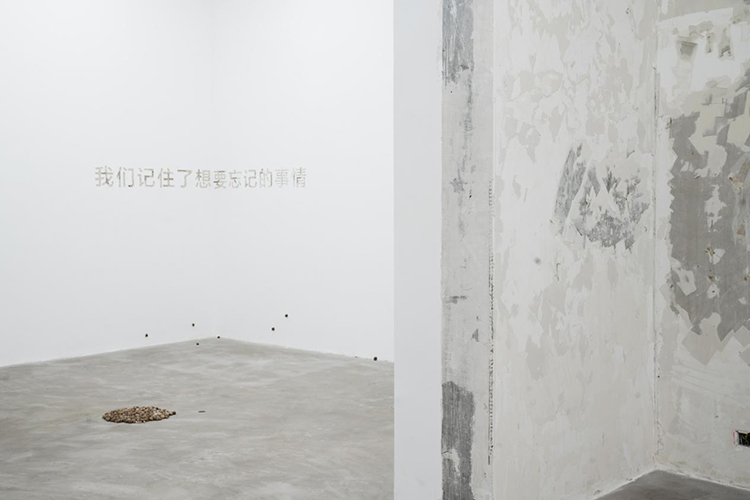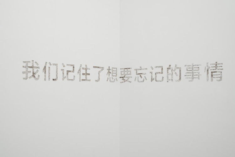 In the exhibition hall, the artist chiseled off the plaster on one wall to leave the words "We forget what we want to remember"and carved out the words "We remember what we want to forget" on another. Here, the "remembering" and "forgetting" become accidental and uncontrollable, suggesting that the more we want to achieve, the more backfire we may often get.