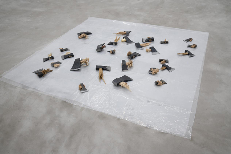 李鋼,《耗材》,2024,斧頭、塑料布、尺寸可變
