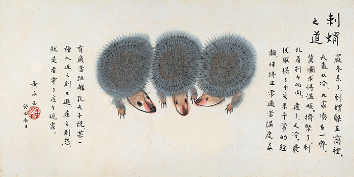 刺猬之道 黃永玉 紙本水墨設色 134.5cm×67.5cm 2003年(圖片來源:清華大學藝術博物館)