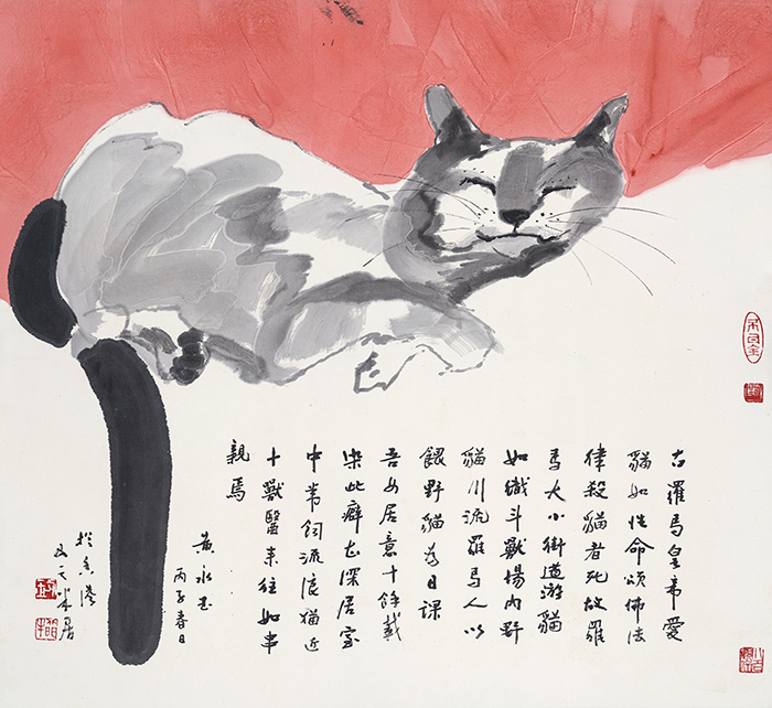 羅馬貓 黃永玉 紙本水墨設色 97cm×89cm 1996年(圖片來源:清華大學藝術博物館)