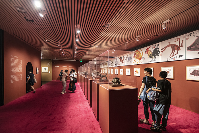 展出黃永玉十二生肖系列作品的“X”展區(圖片來源:清華大學藝術博物館)