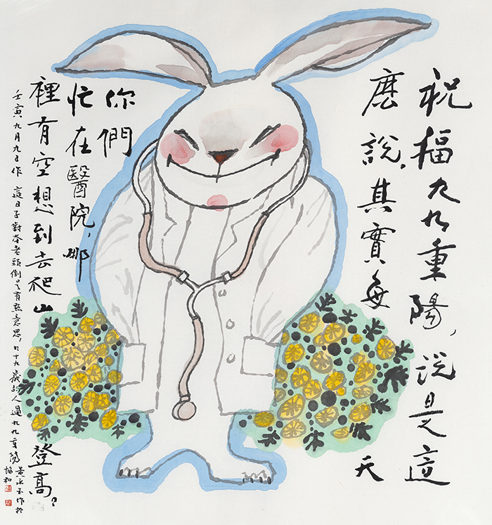 兔子醫生 黃永玉 紙本水墨設色 45cm×48cm 2022年(圖片來源:清華大學藝術博物館)