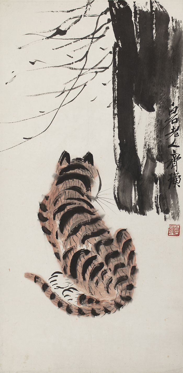 虎 齊白石 紙本水墨設色 68.5cm×36cm 1940年代(圖片來源:清華大學藝術博物館)