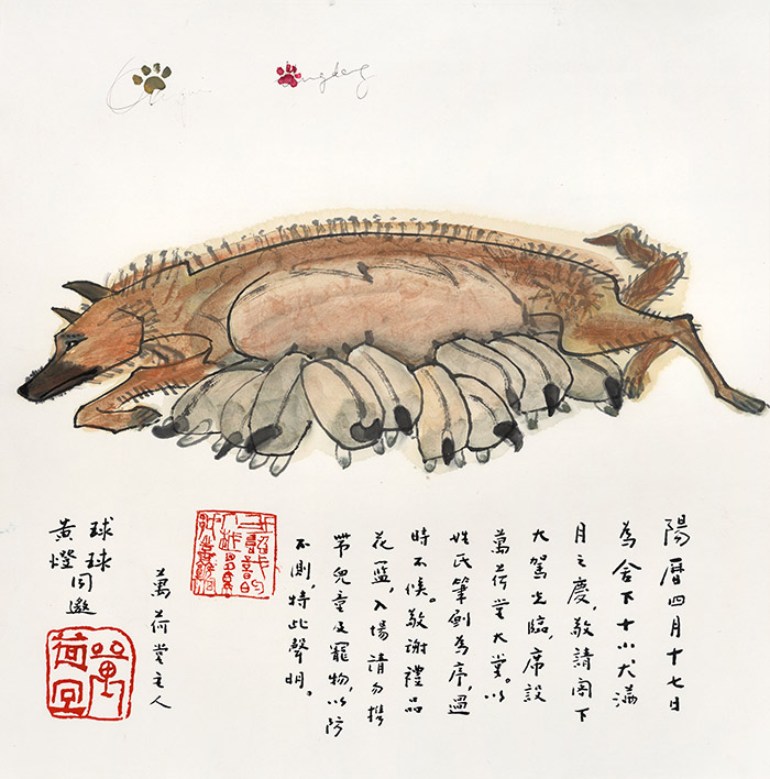 黃燈與十孩 黃永玉 紙本水墨設色 69cm×68.5cm 2013年(圖片來源:清華大學藝術博物館)
