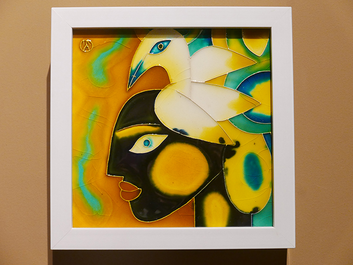心頭的白鴿 肖惠祥 三彩瓷板 20cm×20cm 1980年代