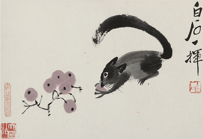 松鼠葡萄 齊白石 紙本水墨設色 27.4cm×40cm 現代(圖片來源:清華大學藝術博物館)