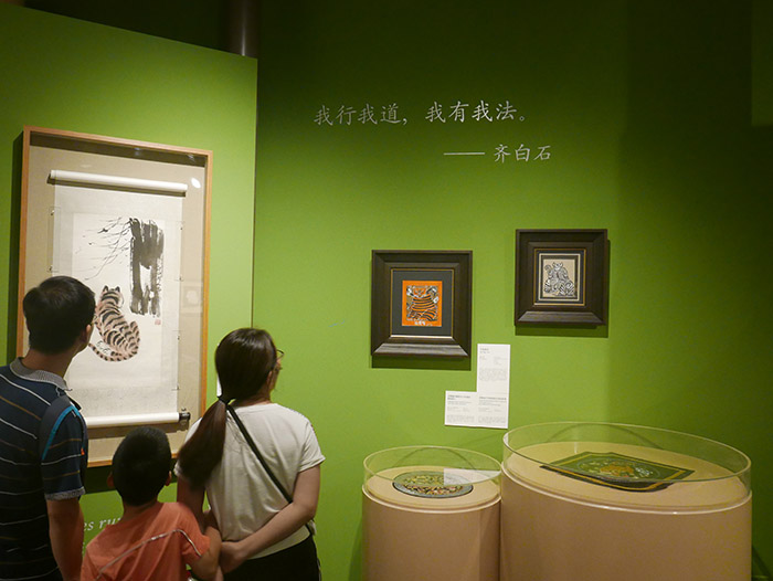 展覽有著豐富的內涵。它以齊白石和黃永玉的作品為主,兼收同時代相關畫家(如王夢白、李苦禪)的同類題材作品,展現出在20世紀中國畫轉變的關鍵節點上,藝術家之間的影響和師承關系。展覽也融合了多種藝術媒介,還在不同板塊中以文學名句點題,真正構建了一個總體的文化場域。展覽引入當代藝術家的動物題材作品,讓觀眾看到傳統的動物題材如何在當代轉化。當然,如策展人劉木維所說,展覽是開放式的,觀眾也可以根據自己的任何一種審美路徑來進入展覽。