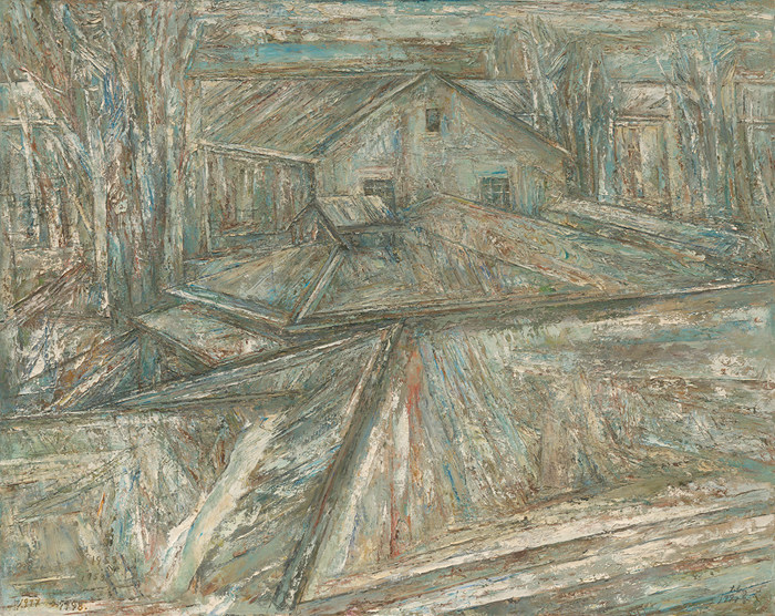 在2000年完成大型全景畫《魯西南戰役》創作后,趙大鈞因身體原因不得不遠離油畫,轉而與大自然交朋友,到川西、滇北、藏東南遠行、跋涉、朝圣。在擱筆8年后,他噴薄而出般創作了面目全新、充滿隱喻的《神山》系列(2009年),這時的作品已超越主題、超越物象,此后則更是拋棄主題,僅以數字序號命名,愈發率性而自由,趙大鈞終于實現了自我涅槃,升華為北方抽象表現油畫的領軍人物。