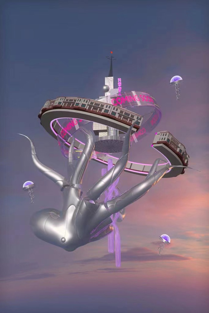 曹斐 《多托邦》第一期 2022 三維渲染數字影像,16:9,彩色,有聲 2分40秒 音樂:馬海平 作品由元邦委托創作 鳴謝:藝術家、維他命藝術空間 及 Sprüth Magers