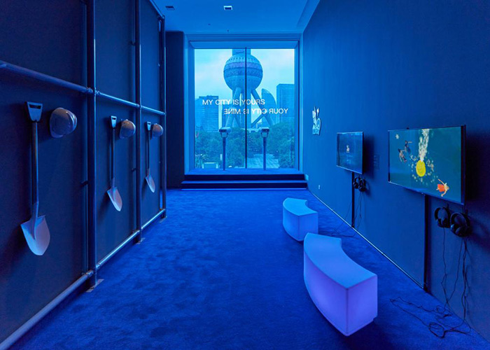 《人民城寨》是《第二人生:中國?翠西》“中國制造”版的城市想象。在“第二人生”的虛擬世界中,用戶可以借數字化身自由探索世界。第二部作品《人民城寨》,藝術家作以反思“第二人生”的虛擬城市景觀如何為了契合西方審美而被設計出來,由此著手設計了一個反映中國建筑和城市發展狀況的“山寨”版。用戶可以以數字化的形式進行訪問,這里的用戶跨越國界、身份的限制,過著第二人生?!抖嗤邪睢穼Α度嗣癯钦讽椖坷锏臄底质澜鐦嫿ㄗ鞒龌貞c更新。一座漂浮在失重的水域維度的大都市,時間的概念在這里消失。