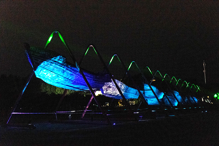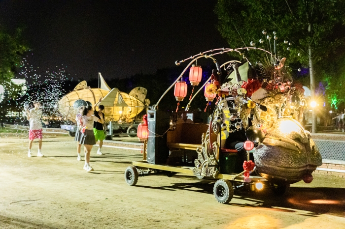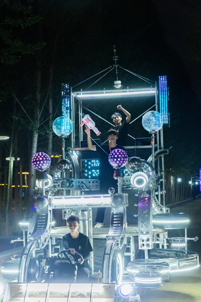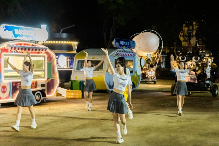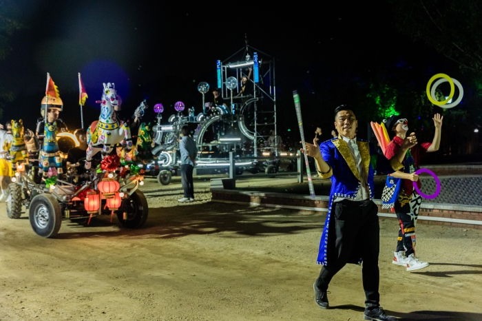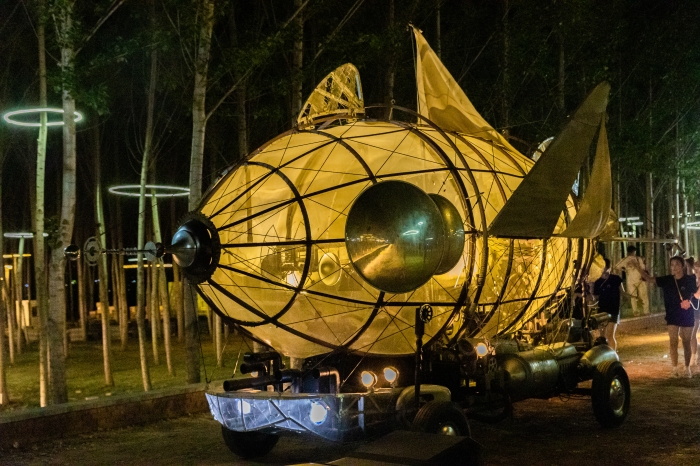 夜幕降臨,星燈點亮,在五彩光線的映襯之下,大不同裝置藝術主題公園煥發出另一種魅力。經過精心改裝,被裝飾成為千奇百怪、多姿多彩的裝置藝術花車開始在園區內巡游,增添了公園的活力和韻味,為觀眾呈現一場流動的視覺盛宴。除了裝置藝術與花車巡游,觀眾們還將欣賞到默劇、魔術、舞蹈等表演和富有創意的cosplay等活動,感受藝術與創意的魅力。